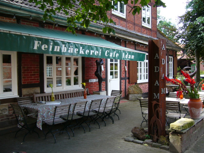 Fuhrberg. Abseits der Hauptdurchfahrtsstraße und dennoch mitten im Ort befindet sich die Feinbäckerei Cafe Adam. Innen sowie außen kann man bei einer gemütlichen Tasse Kaffee den leckeren Kuchen in dörflicher Ruhe genießen. Das ganze lädt ein am Kamin oder draußen an rustikalen Tischen zu verweilen um die Ausstellungsstücke (Bilder und Skulpturen) zu betrachten. Eine Bushaltestelle liegt gegenüber. Die Linie 631 aus Burgwedel hält dort. Mit dem Auto kommend biegt man in der S-Kurve am schön gestalteten Dorfplatz in die Dorfstraße ein und erreicht nach ca. 100 m das Cafe in ruhiger Lage.