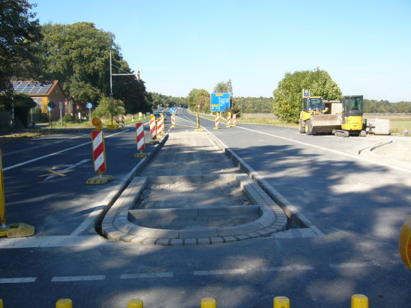 Beinhorn. In diesen Tagen wird der bisher durch eine Ampel gesicherte Überweg K 112 ( B188 alt) für teures Steuergeld umgebaut. Die intakte Fahrbahn wird nun aufgerissen um eine Mittelinsel zu installieren.