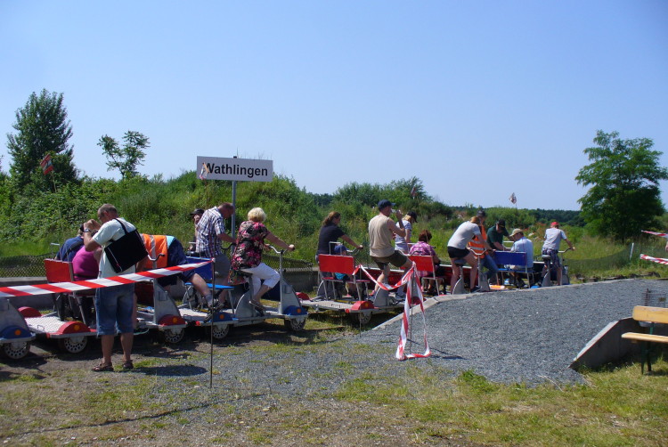 Wathlingen/Hänigsen. Zum Bahnhofsfest der Kalibahn, das traditionell an Pfingsten stattfindet zog es an diesem Wochenende wieder viele Besucher aus nah und fern. Auf dem Gelände am Fuße des Kalibergs in Wathlingen hatte der Kleinbahnverein Wathlingen-Ehlershausen e.V. wieder alles hervorragend organisiert. Neben den Fahrraddraisinen, die alle ausgebucht waren, konnte man auch mit einer Handhebeldraisine, den Streckenverlauf bis zum Ölbahnhof Nienhagen (Exxon) oder in Richtung Hänigsen (Waldlager) befahren. Auf dem Gelände vor Ort gab es die Möglichkeit mit einem Elektrowagen und einer Elektromodellbahn mitzufahren. Auch eine Hüpfburg lockte die kleinen Besucher an. Unter dem Dach eines großen Zeltes konnte man im Schatten ein kühles Getränk, aber auch Kaffee und Kuchen genießen. Nebenan gab es gegrilltes vom Feinsten. Immer wieder finden begeisterte Fans den Weg und machen einen Ausflug mit der ganzen Familie bei Spaß und Sport!
