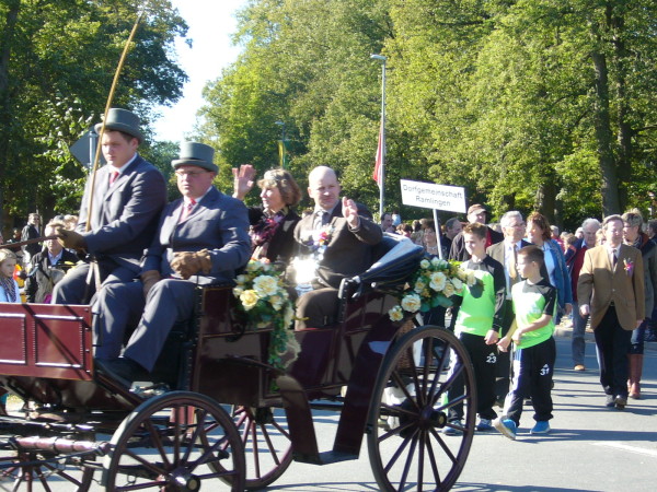 Ramlingen. Farbenfrohe, geschmückte und gestaltete Erntewagen füllten schon vor Beginn des großen Festumzuges die Grüne Allee. Der prächtige Baumbestand im immer noch satten Grün, spendete viel Schatten, so dass die blendende Wirkung der bereits tiefstehenden Sonne wenig störte. Kaum hatten die Otzer Ihre Kartoffelwoche beendet, stiegen Sie auf´s Rad und fuhren auch noch nach Ramlingen.