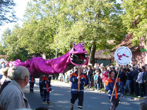 Die ausgewiesenen Parkflächen waren randvoll gefüllt mit Fahrzeugen der Gäste. Ortbürgermeisterin Meinig richtete sich in Ihren Worten auch an Bewohner der Kernstadt Burgdorf mit dem zutreffenden Hinweis dass in Ramlingen Leben stattfindet. Anschließend stieg der Erntekönig Thorsten Nothwehr in eine Kutsche die hinter der Erntekrone fuhr. Dicht gedrängt standen Massen von Besuchern zu beiden Seiten der Ortsdurchfahrt und füllten auch nach Ende des Umzuges noch längere Zeit die ganze Fahrbahnbreite aus. Der festliche Umzug begeisterte die Zuschauer durch sehr kreativ gestaltete „Motto-Wagen“ die wir für Sie noch einmal im Bild festgehalten haben. Themen wie Windräder im Flugplatznähe, gesunde Ernährung, die Ramlinger Puppenkiste, Frühstück bei Stefanie, das Waldbad, historische Feuerwehr, Ernte verpennt, teuflisch-himmlisch, Hase und Jäger, Freiengericht und dazwischen immer wieder Vereine, Gruppen und Musik. Die fünfte Jahreszeit endet in Ramlingen am 18.10 mit einem großen Laternenumzug!