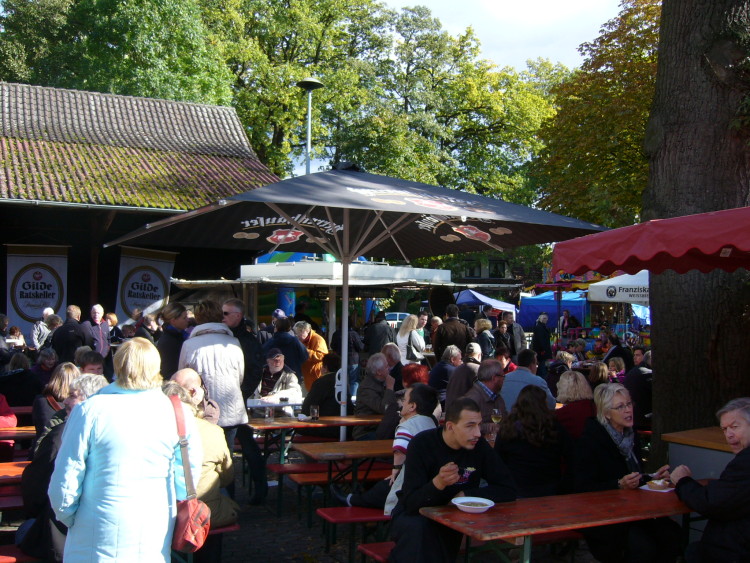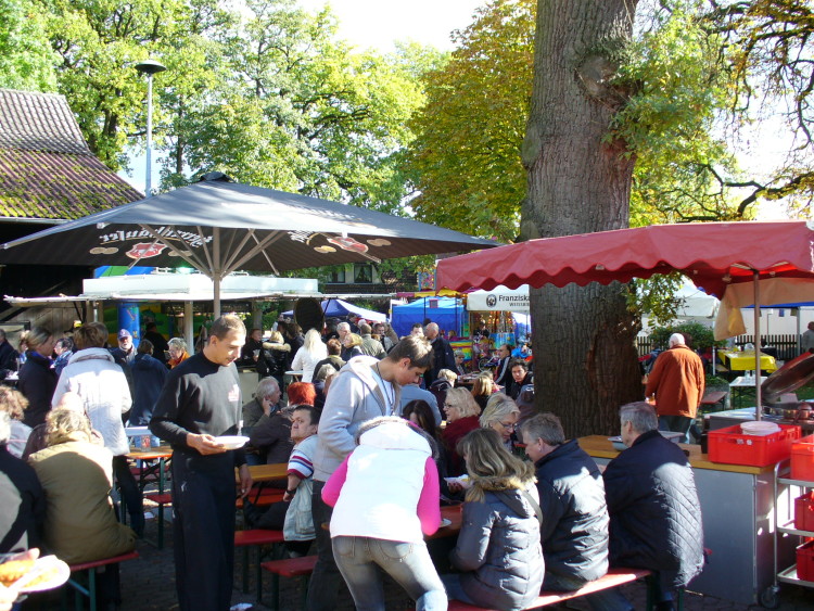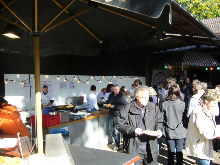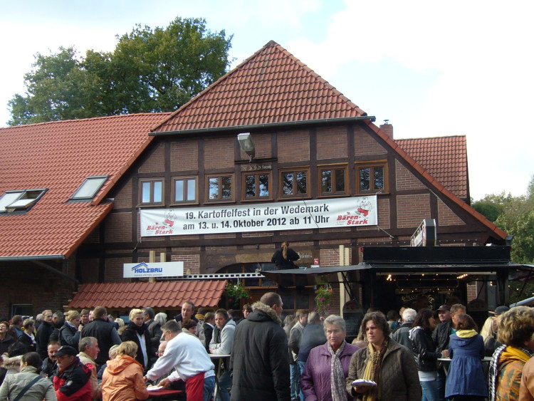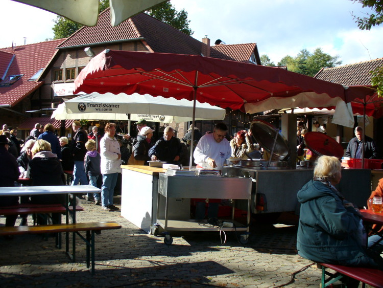 Wennebostel. Bei herrlichem Herbstwetter fanden sich auf dem Hof Söder an diesem Wochenende viele Besucher ein und fanden alles vor was die Knolle zu bieten hat. Unter den mit farbenfrohem Herbstlaubageschmückten Bäumen waren alle Sitzgelegenheiten gut gefüllt. Die Kartoffel konnte in allen Variationen, von Bratkartoffeln, mit Spiegeleiern, Grünkohl und Bregenwurst, mit Pfannenschlag oder auch in Stäbchenform konnte verkostet werden. Besonderen Zulauf fanden die Kartoffelpuffer mit Apfelmus. Dazu gab es Livemusik von der „Tom Bailey Band“. Rund um das Fest gab es alle die Dinge, die zu einem Kartoffel und Bauernmarkt gehören – Gemüse und Obst vom örtlichen Händler. Auch Fisch aus dem Räucherofen lockte die Besucher an. Es duftete aber auch nach Lebkuchenherzen und gebrannten Mandeln für die kleinen Festbesucher. Manch einer fand sogar schon etwas für kalte Jahreszeit zum wärmen.