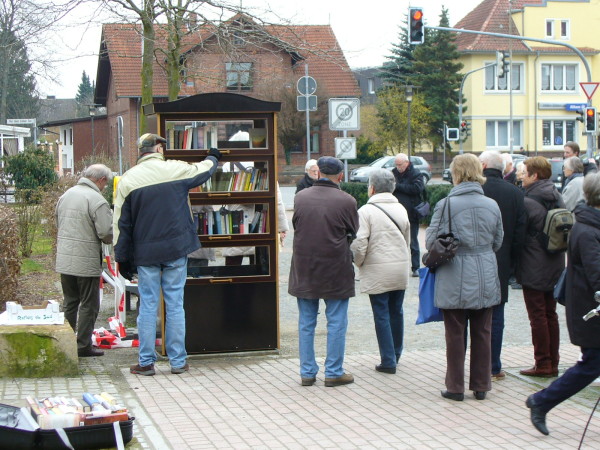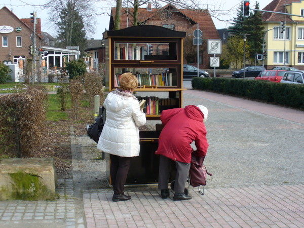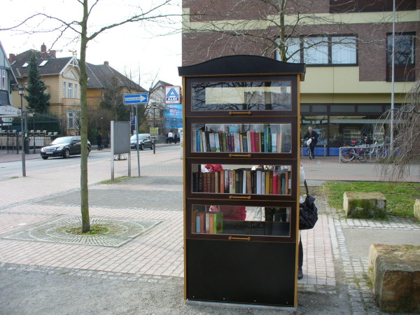 Burgdorf. Seit heute Vormittag steht auf der Grünfläche (ehemals Hindenburgwall) zwischen Aldi und dem Völkerschlachtdenkmal ein öffentlicher Bücherschrank. Dort können kostenlos Bücher entnommen, als auch neue hinein gestellt werden. Den Lesern bietet die Grünanlage auch einige Sitzbänke um sich bei entsprechendem Wetter den literarischen Werken zu widmen.