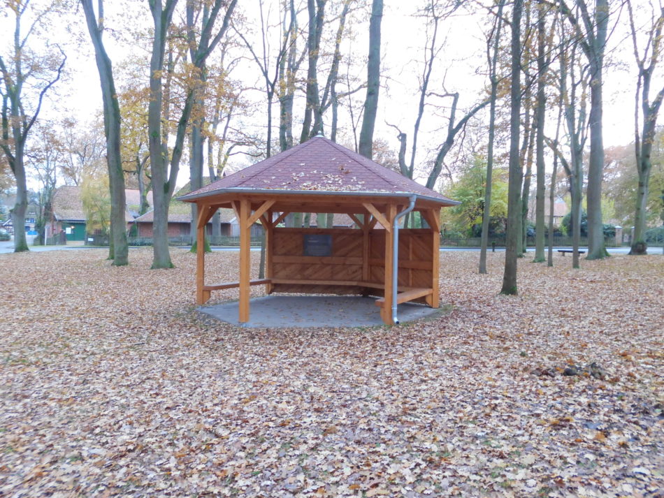Ein Beispiel aus dem Landkreis Celle zeigt, wie schön und zweckmäßig so ein Pavillon entstehen kann: Durch Mitwirkung der Stadt Celle, einer Dachdeckerfirma und unterstützt von Bürgern und zahlreichen Spenden aus einem Bürgerbrunch entstand ein Ortstreff-Pavillon.