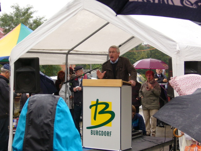 Burgdorf. Seit heute morgen liegt die Stadt Burgdorf in der Besuchergunst wieder weit hinten. Mit einem klassischen Eigentor hat man Kunden und Besucher nicht nur wörtlich im Regen stehen lassen! Während der Dauerregen den sportlichen Läufern nichts ausmacht, sind die Besucher schon durch die Anfahrt gefrustet.Mit planungstechnischem Geschick wäre das Chaos zu vermeiden gewesen.Trotz eines großen Autokran, hatte niemand den Überblick.