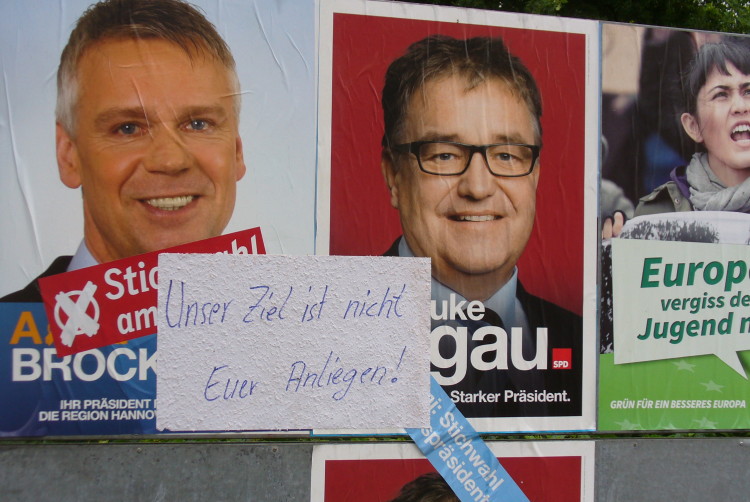 Der Weg führt jedoch nicht über das aufkleben von Äußerungen auf den Plakaten der Bewerber!