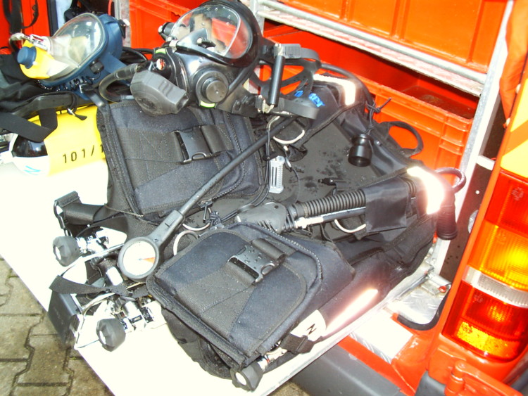 Natürlich waren auch die Tauchgeräte nicht mehr auf dem Stand der Zeit, und das bei leeren Kassen! Auch hier wurde sehr umsichtig gehandelt, die Beschaffung durch Zeitversatz (erst 2 Geräte, dann weitere).Nutzung von Gebrauchtgeräten (Modular) anderer Feuerwehren die günstig zu bekommen waren. Eine lange Durststrecke war noch lange nicht zu Ende. Es musste den Anforderungen der Europäischen Normung und dem Technischen Fortschritt folgend die Tauchgerätetechnik der Zukunft angpasst werden.