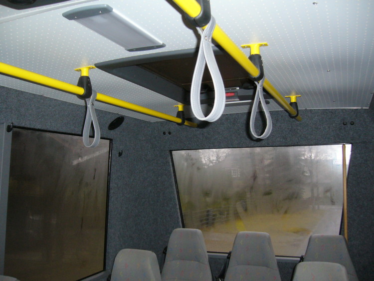 Einstieg in den BürgerbusHaltegriffe im Busauch an Bewegungsfreiheit wurde gedachtBürgerbus SitzeSitzreihen BBMit dem Bürgerbus unterwegs