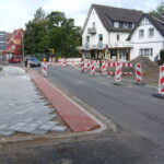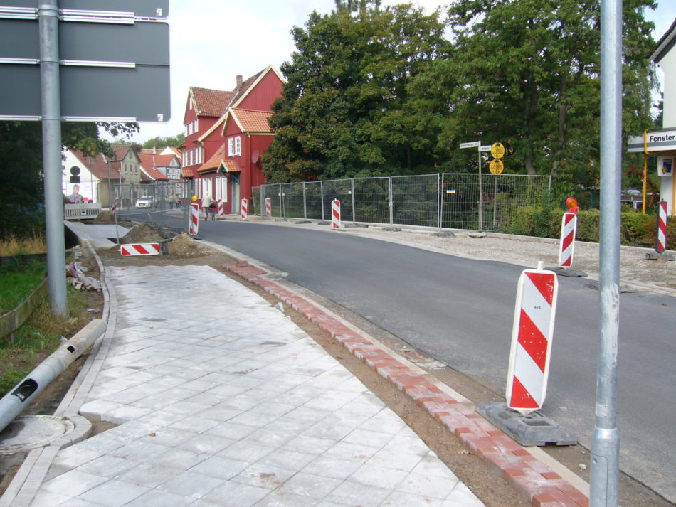 Burgdorf. Wer am Wochenende von der Kreuzung “Schwarzer Herzog” kommend in Richtung Innenstadt fuhr, konnte sehen, dass die Baustellenschilder dort viel zu früh entfernt wurden. Wie auf unseren Bildern zu sehen ist, sind die Bauarbeiten noch nicht vollständig abgeschlossen. Es kann nicht die Rede davon sein, dass die Straße schon ohne Einschränkungen befahrbar ist. Auf der Straße verengen Absperrbaken die Fahrbahn und erschweren die Sicht. Beim passieren dieser Engstelle ist besondere Vorsicht geboten. Außerdem sind die Fußwege an den Rändern noch unvollständig gepflastert, was zu einer Unfallgefahr (besonders nachts) führen kann. Die Brückengeländer an der Aue und am Gümmekanal fehlen auch noch.